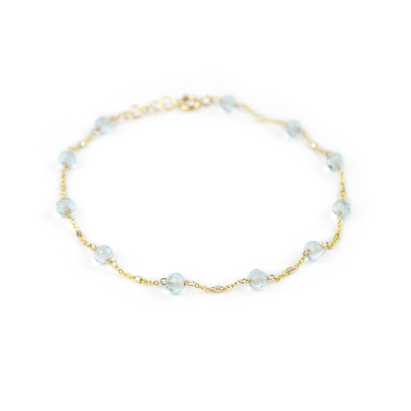 Bracciale donna in oro giallo e oro bianco 750, con topazio azzurro tondo e sfaccettato di 4 mm
