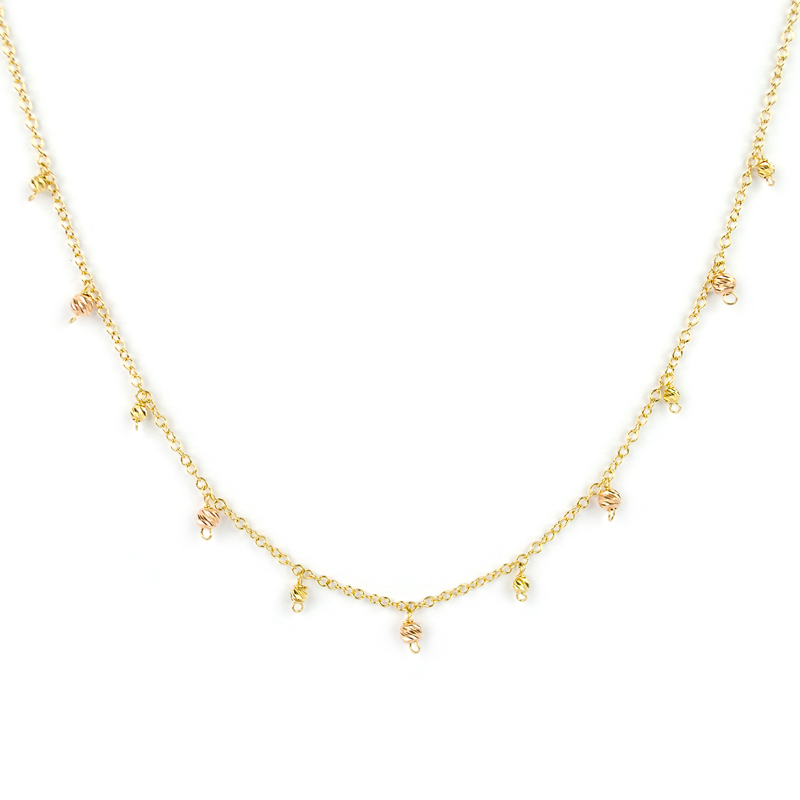 Collana girocollo donna in oro giallo tit 750 (18 kt), con palline slash in oro rosa di 3 mm alternate a palline slash in oro giallo di 2 mm, pendenti, catena rolò tonda massiccia