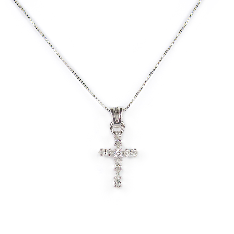 Collana ciondolo croce in oro bianco con zirconi ovali