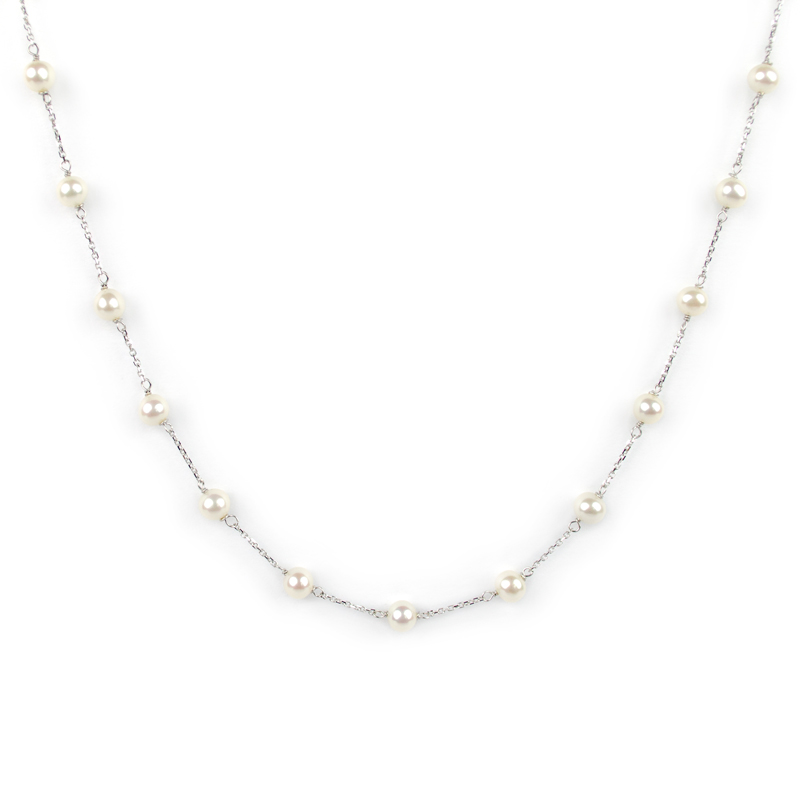 Collana girocollo donna in oro bianco tit 750 (18 kt) con perle di 4,5 mm coltivate acqua dolce