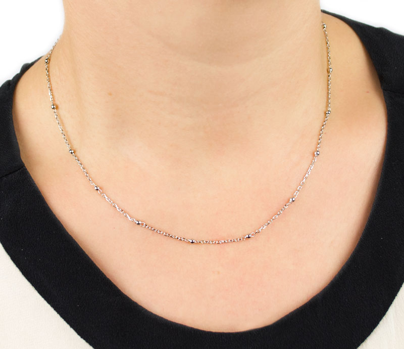 Collana girocollo donna in oro bianco tit 750 (18 kt) con palline lisce e lucide di 2,3 mm