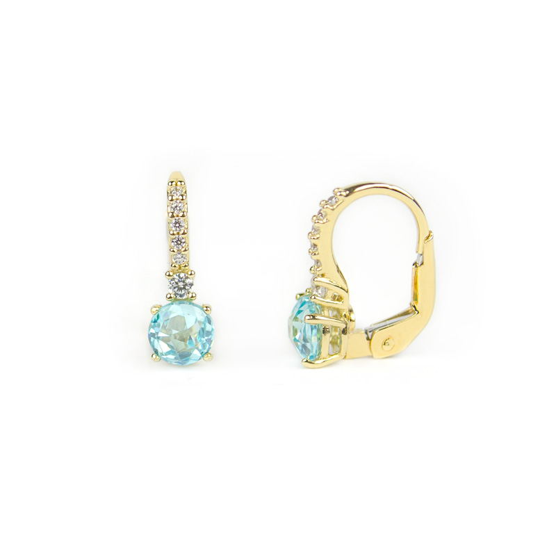 Orecchini monachella in oro giallo con topazio azzurro e zirconi